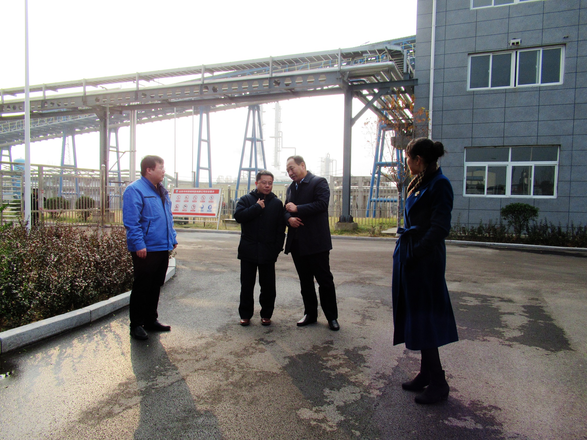 孫洪剛首先參觀了維度公司,認真聽取老區的情況介紹,并對老區周邊狀況進行了考察。隨后對中科綠碳科技公司進行了參觀,聽取了DMF裝置試驗、成果鑒定、新工藝節能減排和中試平臺運行等情況